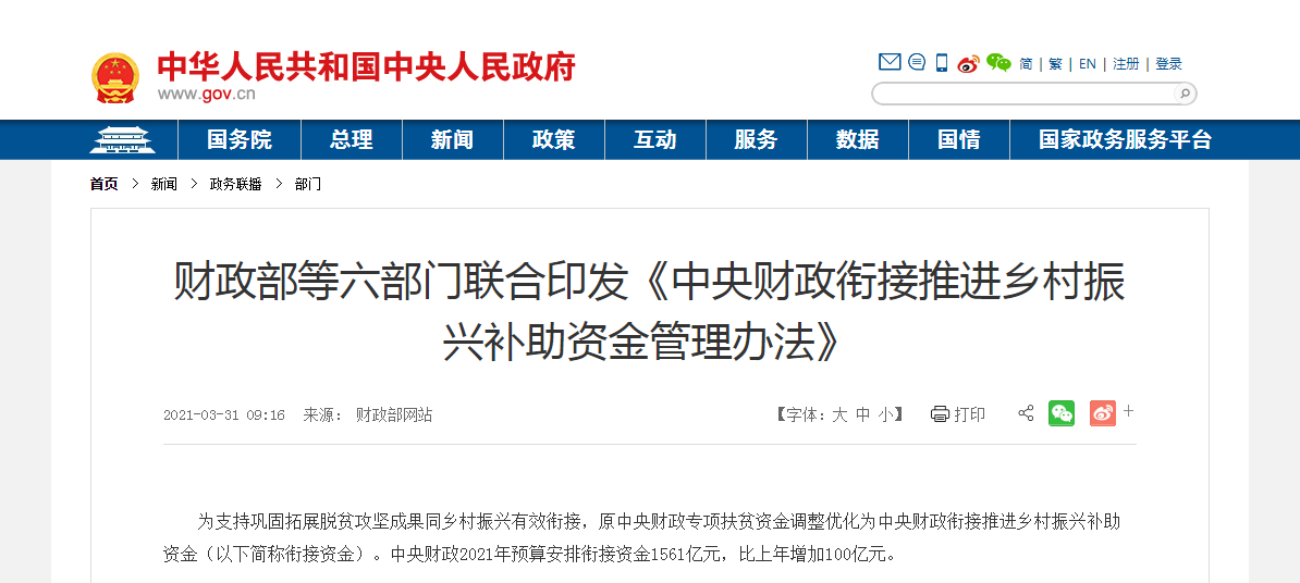 1561億元鄉村振興補助資金怎么安排?管理辦法來了