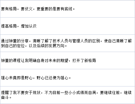 聽完鐘董的分享,鼎正工程咨詢股份有限公司董事長王雁然對此次中量鼎正EMBA的聯合開辦表示祝賀。他表示,鐘董的分享充滿激勵與鼓勵,希望學員們能夠從中學習積極追求的樂觀心態,在這寶貴的一天里,主動思考、互動,在有限的時間內,創造無限的學習價值。