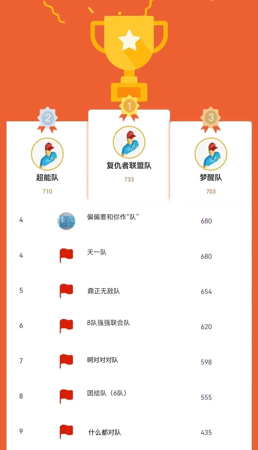 大家好,我們是“偏偏要和你作‘隊’”、“強強聯(lián)合隊”、“復仇者聯(lián)盟隊”、“鼎正無敵隊”、“啊對對對隊”、“超能隊”、“天一隊”、“團結隊”、“夢醒隊”、“什么都對隊”。