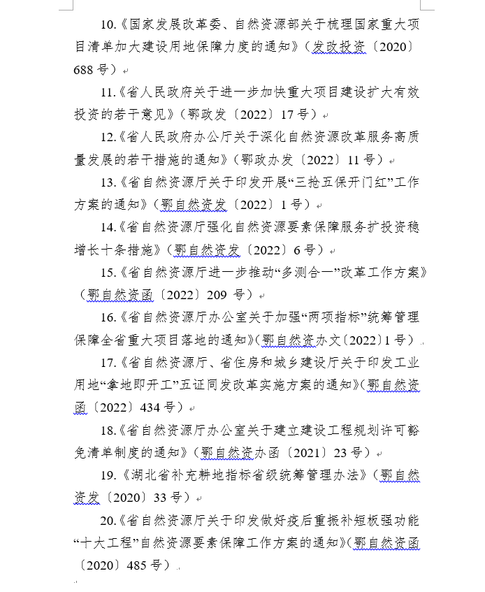 23.實行自然資源“一次預告”制度。各級自然資源主管部門要根據項目用地紅線,主動向用地單位提供用地現狀、規劃、占用耕地、林地、生態保護紅線、涉及自然保護地、地質災害易發區、壓覆礦產等信息,一次告知建設單位需辦理的各項手續、要件資料和重要時間節點,服務用地單位“只跑一趟”。
