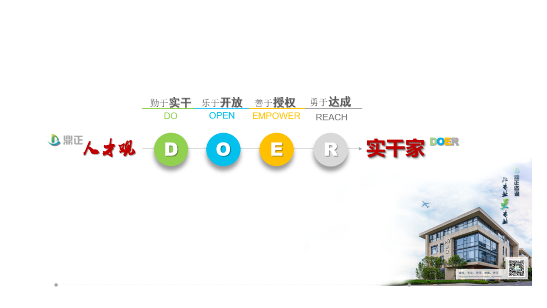 鼎正“DOER實(shí)干家”人才觀,是我們對(duì)人才認(rèn)知的基本價(jià)值觀,亦是人才發(fā)展成長(zhǎng)的路徑,它能具體化指導(dǎo)同事們?cè)诠ぷ髦小皩?duì)于自己、對(duì)于他人、對(duì)于團(tuán)隊(duì)、對(duì)于上級(jí)”分別能做些什么、該如何去做,從而調(diào)動(dòng)和培養(yǎng)同事們發(fā)展的內(nèi)驅(qū)力和工作的協(xié)同性。