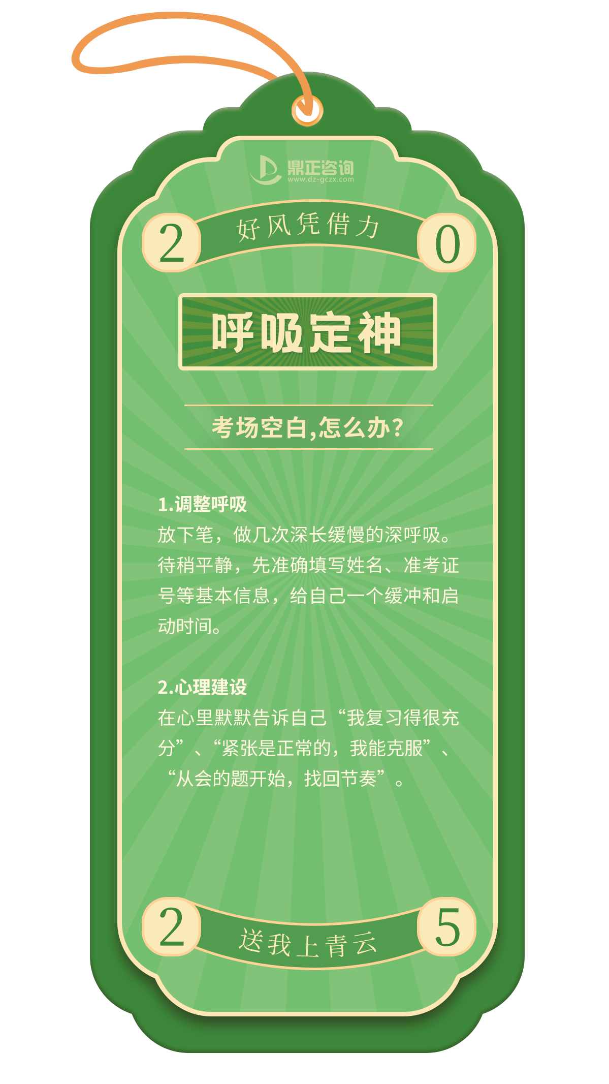 一年一度的高考即將拉開帷幕,全國1335萬學(xué)子,即將統(tǒng)一奔赴人生的重要考場,十年寒窗磨一劍,只為能夠在這一次迎接光明的未來!決戰(zhàn)時(shí)刻,除了扎實(shí)的知識(shí),從容應(yīng)對(duì)考場內(nèi)外的“小意外”同樣關(guān)鍵。今天,鼎正人特別為莘莘學(xué)子準(zhǔn)備了這份「高考應(yīng)急錦囊」,匯集常見突發(fā)狀況的實(shí)用應(yīng)對(duì)策略,助大家穩(wěn)住心態(tài),全力發(fā)揮,讓每一滴汗水都不負(fù)期待!