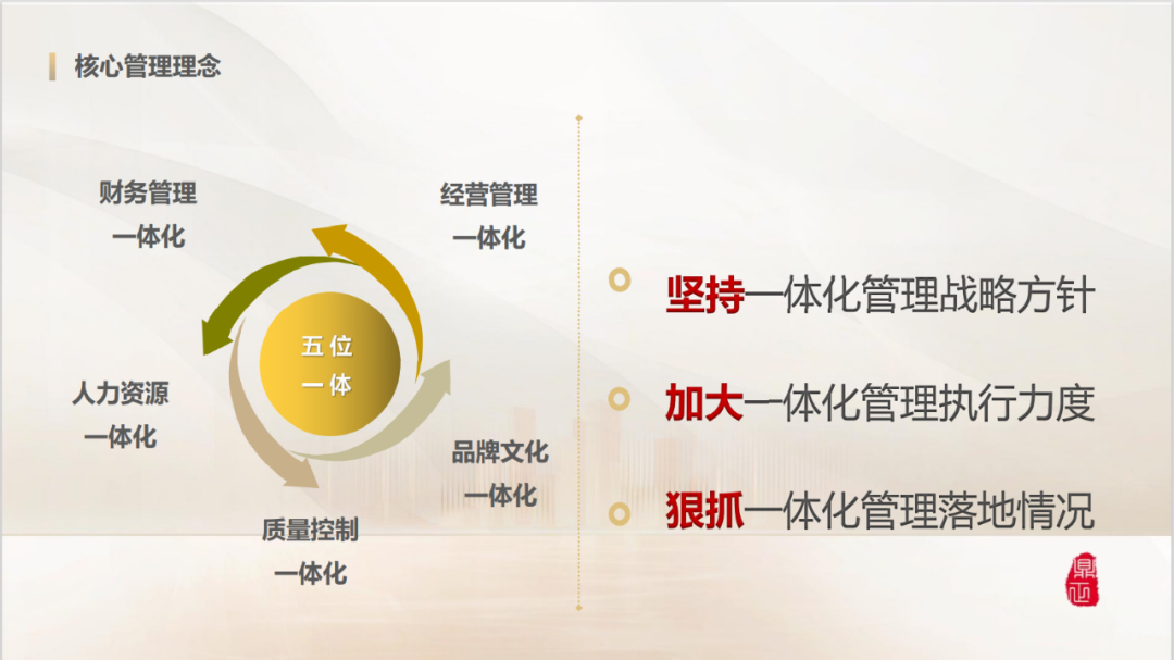城市公司發(fā)展部經(jīng)理文家佳分別從品牌文化、人力資源、質(zhì)量控制、財務(wù)管理、經(jīng)營管理五個維度詮釋了總分公司一體化核心管理理念,引導(dǎo)總分公司“共資源、共收益、同文化、同標(biāo)準(zhǔn)”,實現(xiàn)總分公司業(yè)務(wù)聯(lián)動及全流程風(fēng)險管控的目標(biāo)。