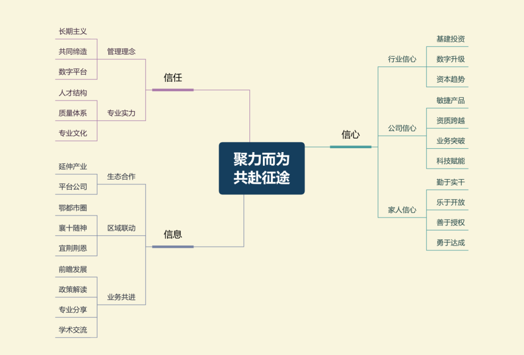 副總經(jīng)理彭亮用“信心、信息、信任”三個詞,詮釋了2023年分公司“聚力而為,共赴征途”的工作部署精神,同時為分公司走長期發(fā)展路線賦能。他指出工程咨詢行業(yè)仍然處于重要的發(fā)展機遇期,必須把握大勢、提振信心;夯實專業(yè),建立信任;互通信息、資源共享。
