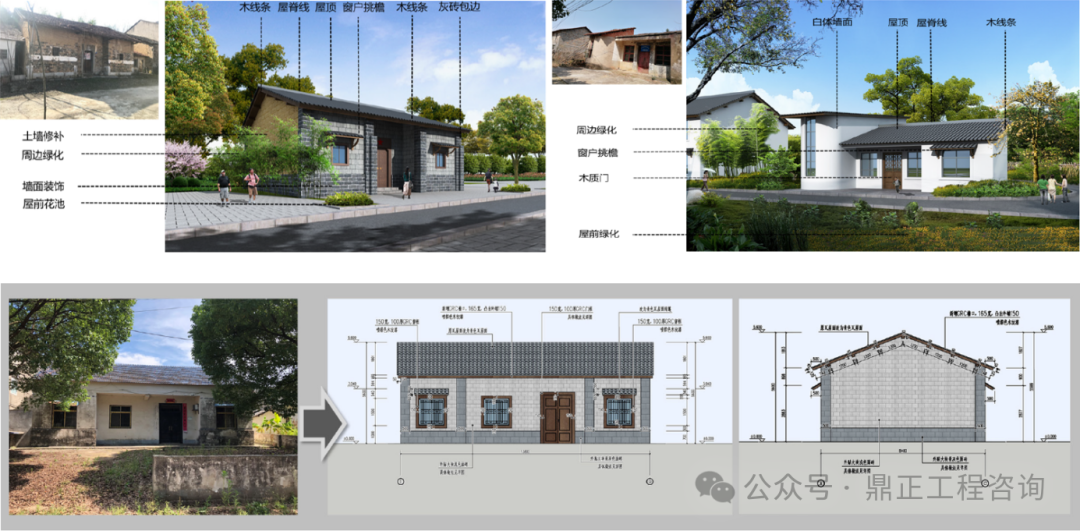 在建筑美化方面,通過建筑整體色彩協(xié)調(diào)、立面美化、增加裝飾、宅前屋后綠化等措施,實(shí)現(xiàn)對(duì)建筑的整改。其中對(duì)于歷史建筑風(fēng)貌整治,要在不改變歷史建筑原狀的原則下,對(duì)民居進(jìn)行部分修繕。同時(shí)整治歷史建筑的周圍環(huán)境,提升整體環(huán)境質(zhì)量。