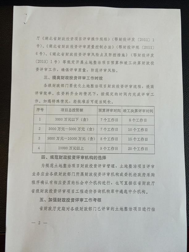 湖北省財(cái)政廳關(guān)于規(guī)范土地整治項(xiàng)目財(cái)政投資評(píng)審工作的通知