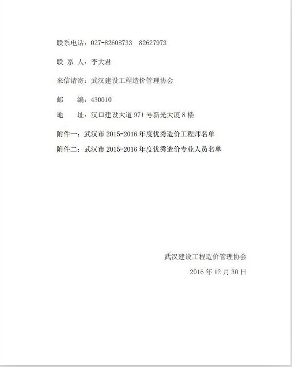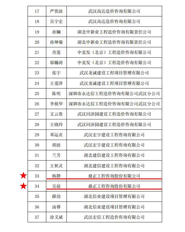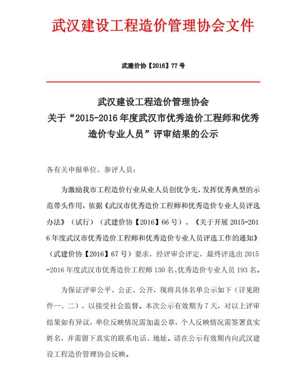 根據(jù)武建價協(xié)【2016】77號文件公示,我司員工楊靜、吳瓊榮獲2015-2016年度武漢市"優(yōu)秀造價工程師"稱號,黃建新、張恒、吳輝、彭萍榮獲2015-2016年度“優(yōu)秀造價專業(yè)人員”稱號。此次榮譽的獲得,既是對我司同志工作的肯定,也展示了鼎正人愛崗敬業(yè)、爭創(chuàng)一流的精神風貌。鼎正公司將以更加昂揚的斗志和飽滿的熱情,服務(wù)于企業(yè)、服務(wù)于社會!