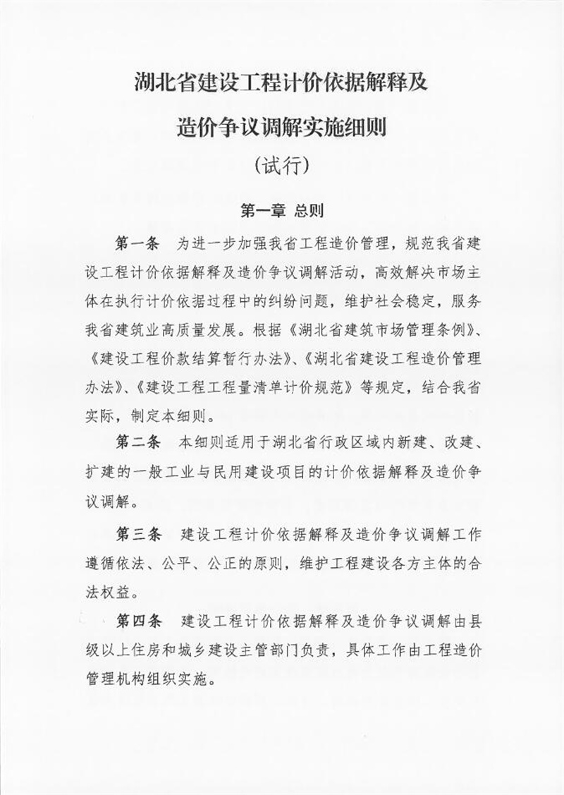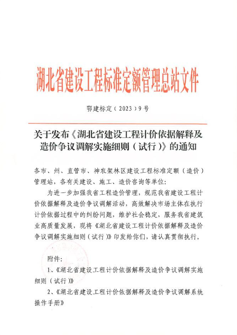 轉發關于發布《湖北省建設工程計價依據解釋及造價爭議調解實施細則(試行)》的通知